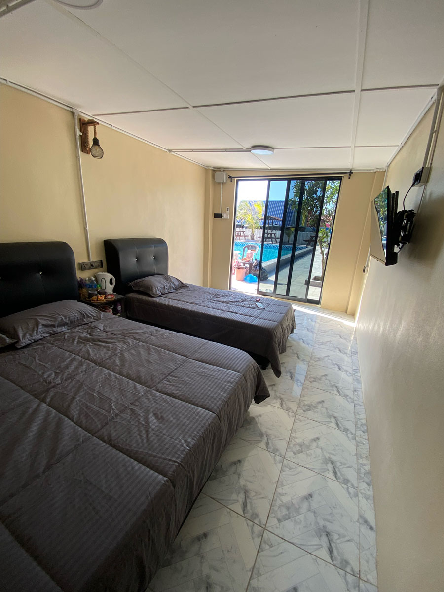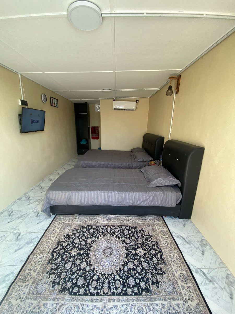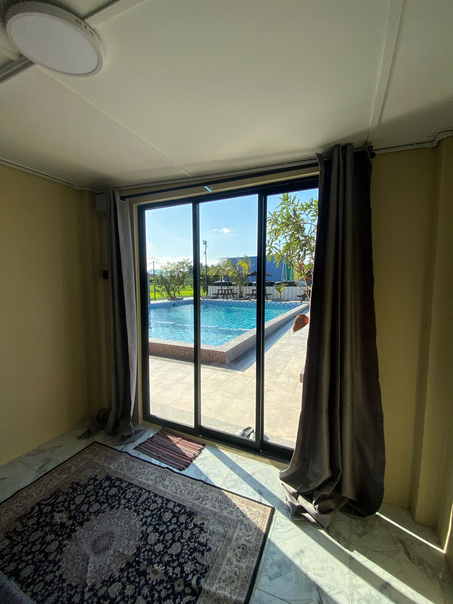 Experience a one-of-a-kind family getaway in our innovatively designed room, crafted from a repurposed shipping container. This unique space boasts a luxurious queen bed and an additional cozy single bed, offering optimal comfort for up to 3 adults and 1 child.